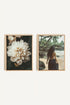 A delicate flower with cream petals unites with the image of a woman walking freely on a wild beach. The Danse du Vent Duo is a tribute to free, fluid femininity connected to nature. The soft hues, the contrast between light and shadow, and the texture of the sand create an atmosphere that is both intimate and powerful. The ensemble exudes a subtle sensuality and great visual softness. This duo is perfect for an inspiring and poetic decor.