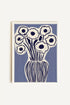 This graphic floral artwork contrasts deep black flowers against a slate blue background. Both chic and bold, it combines the softness of the design with the strength of the contrast. Ideal for enhancing a modern or creative decor.