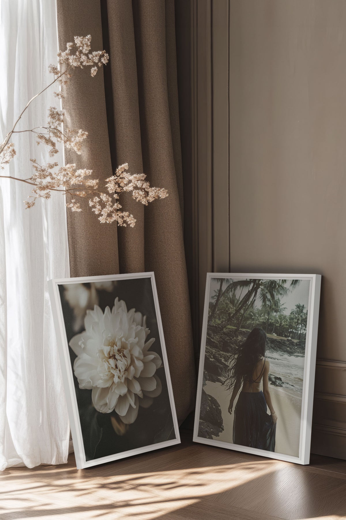 OLEKA CANVAS - DUO DANSE DU VENT, 2 Oeuvres sur toile étirée, encadré Naturel Clair