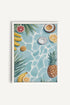 Des fruits tropicaux colorés flottent sur un fond d’eau cristalline. Une composition dynamique qui évoque les plaisirs de l’été. L’ananas, le citron, la noix de coco et les feuilles exotiques créent une ambiance vitaminée. Parfaite pour une cuisine ou une déco estivale. Fraîche, vive et ensoleillée.